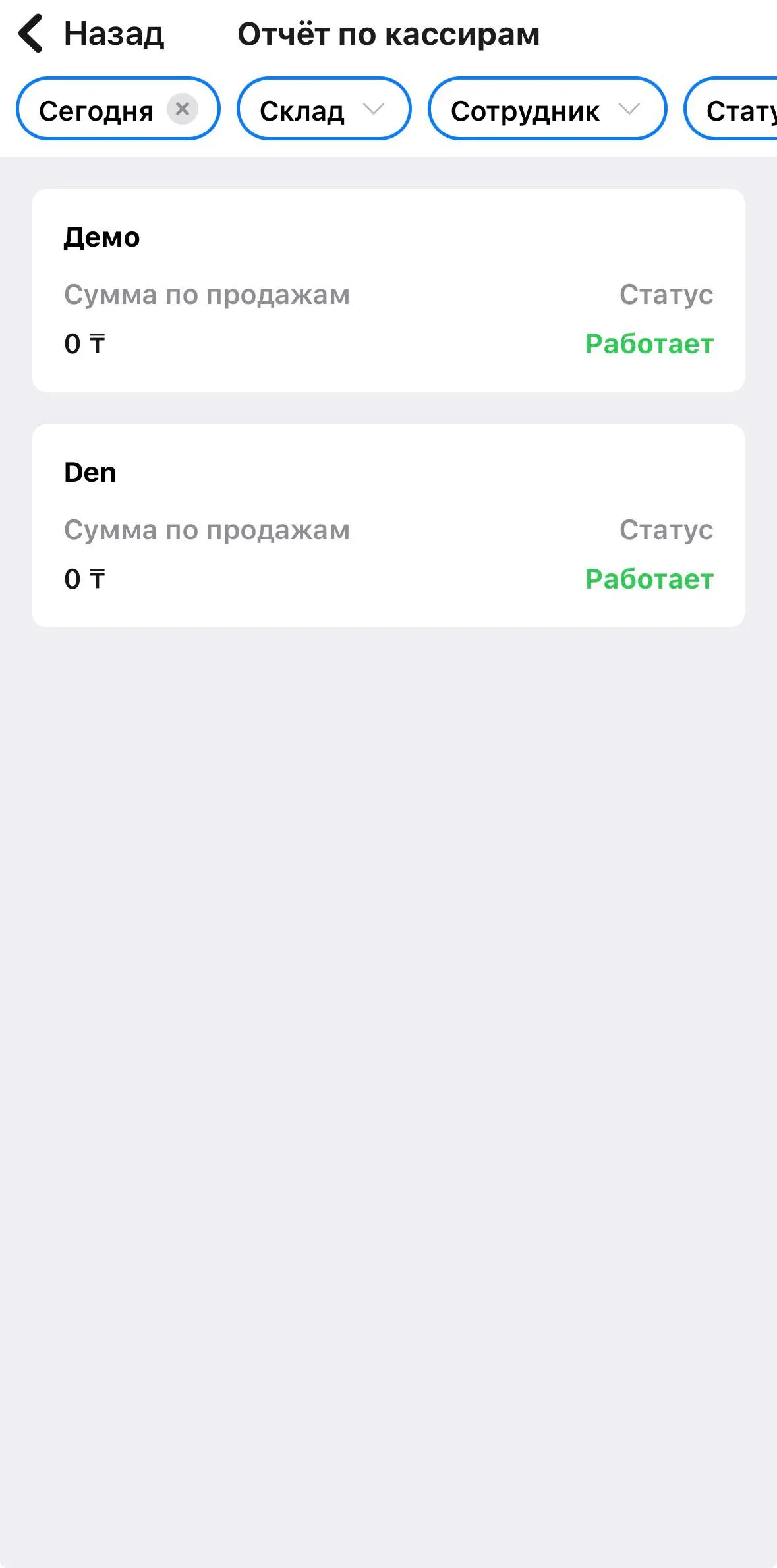 Отчёты по Кассирам