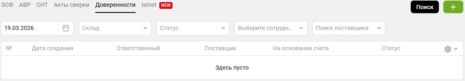 - Открыть раздел Документы, далее перейти в раздел Доверенности