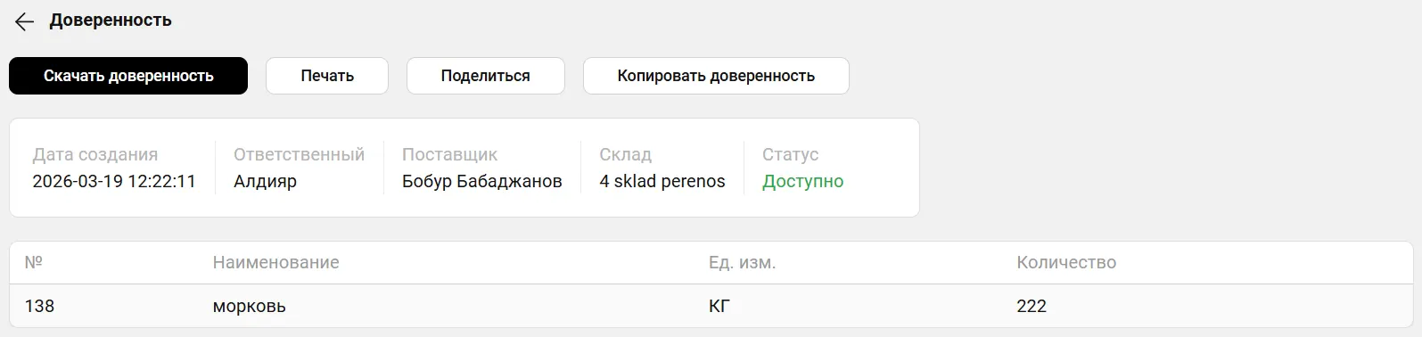 Создание доверенности