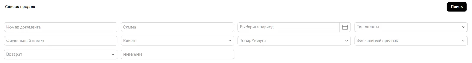 Для поиска определенного чека/продажи вы можете воспользоваться фильтрами предоставленными в разделе.