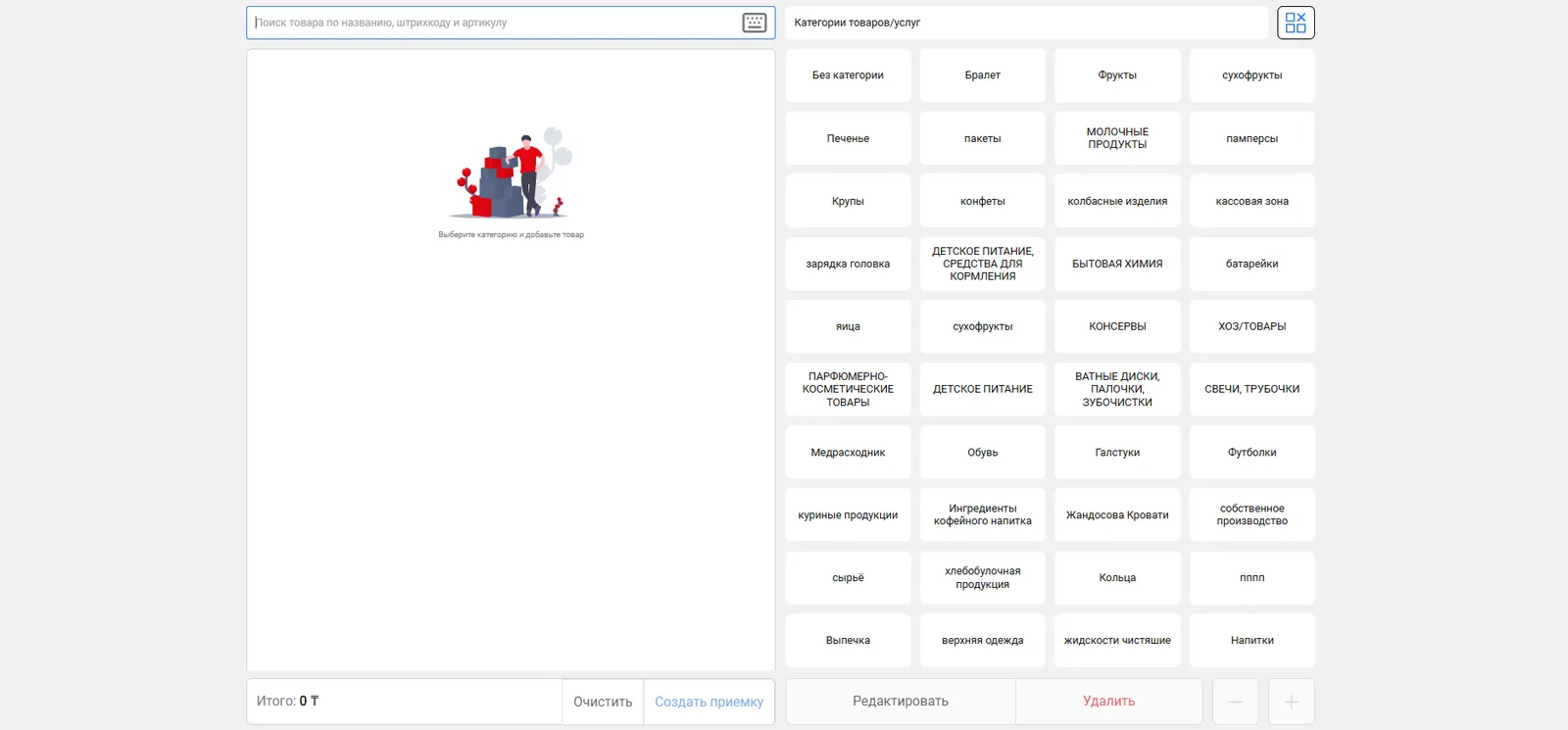 Раздел используется для добавления товаров кассиром без необходимости в предоставлении доступа к Административной Панели сотруднику.