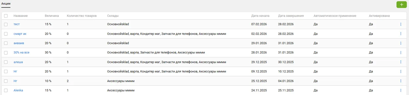 Раздел предназначен для управления акциями.