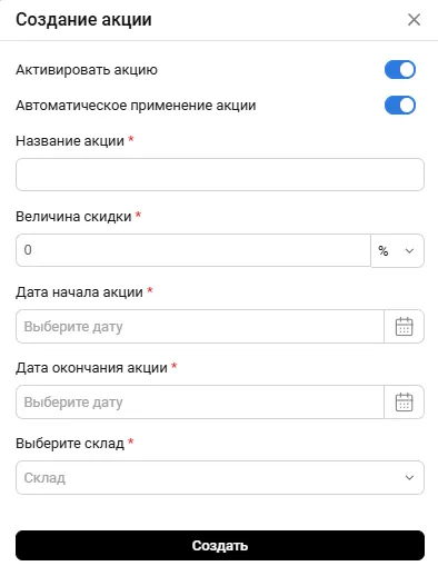 Создание акции