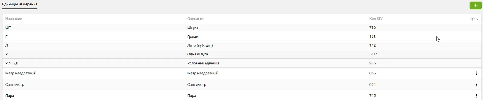 Раздел используется для управления единицами измерения и создания новых.