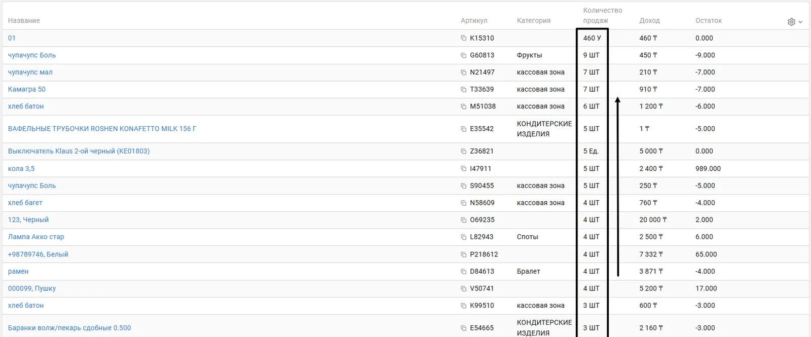 - Яғни, ең көп сатылған өнімдер жоғарыда болады.