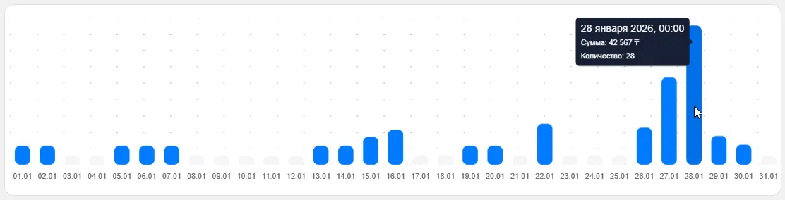 "Сату статистикасы" беті таңдалған уақыт кезеңіндегі сатылымның жалпы динамикасын талдауға арналған.
