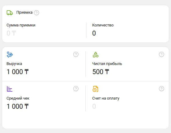 | Қабылдау | Сатып алынған тауарлардың көлемі мен саны |