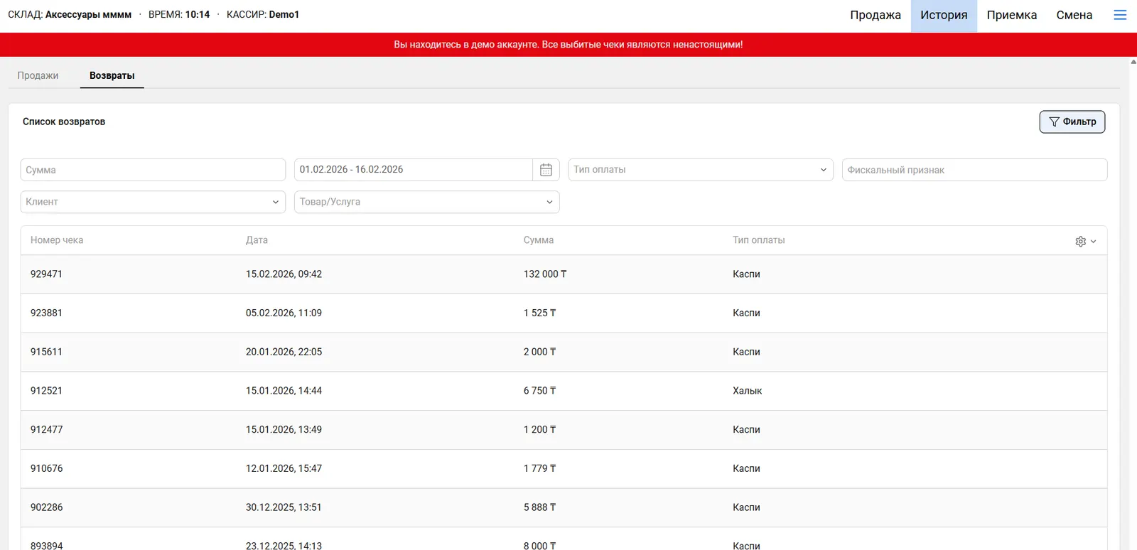 Бөлім барлық аяқталған қайтарулардың тарихын көрсетеді. Ашу үшін Тарих қойындысындағы сәйкес түймені басыңыз.